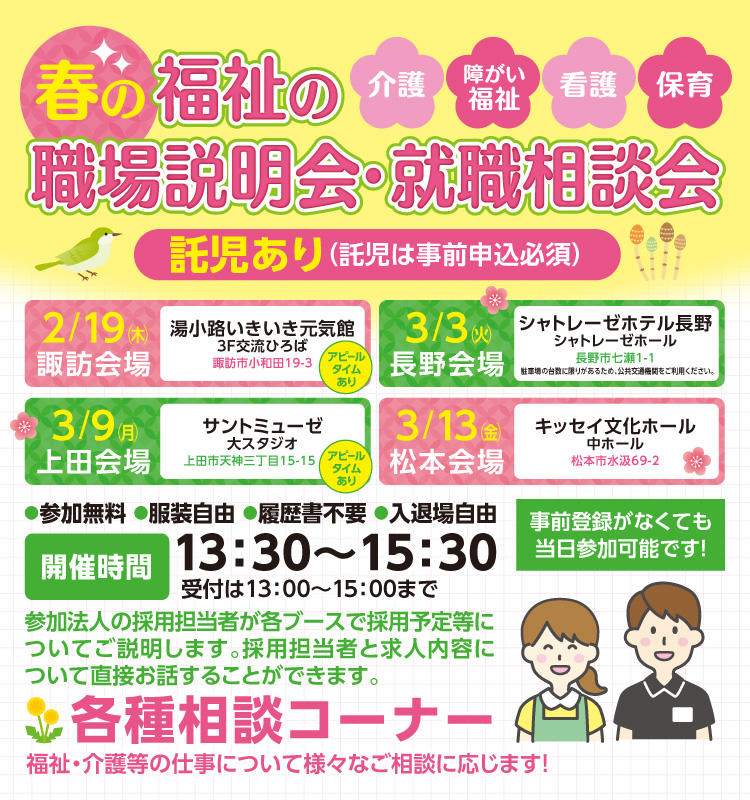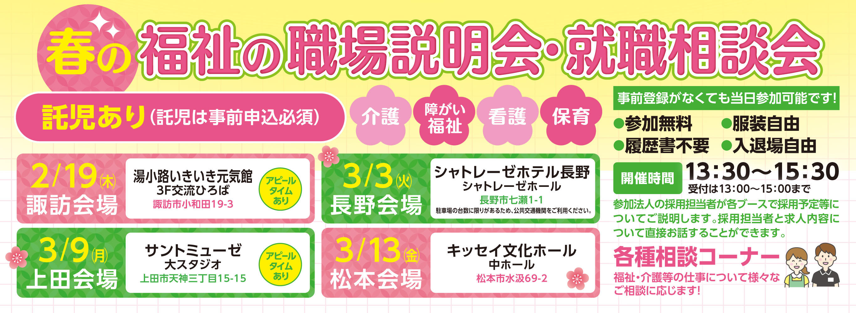 - 【事業所の方へ】春の福祉の職場説明会・就職相談会(令和7年度第3回) 出展のご案内