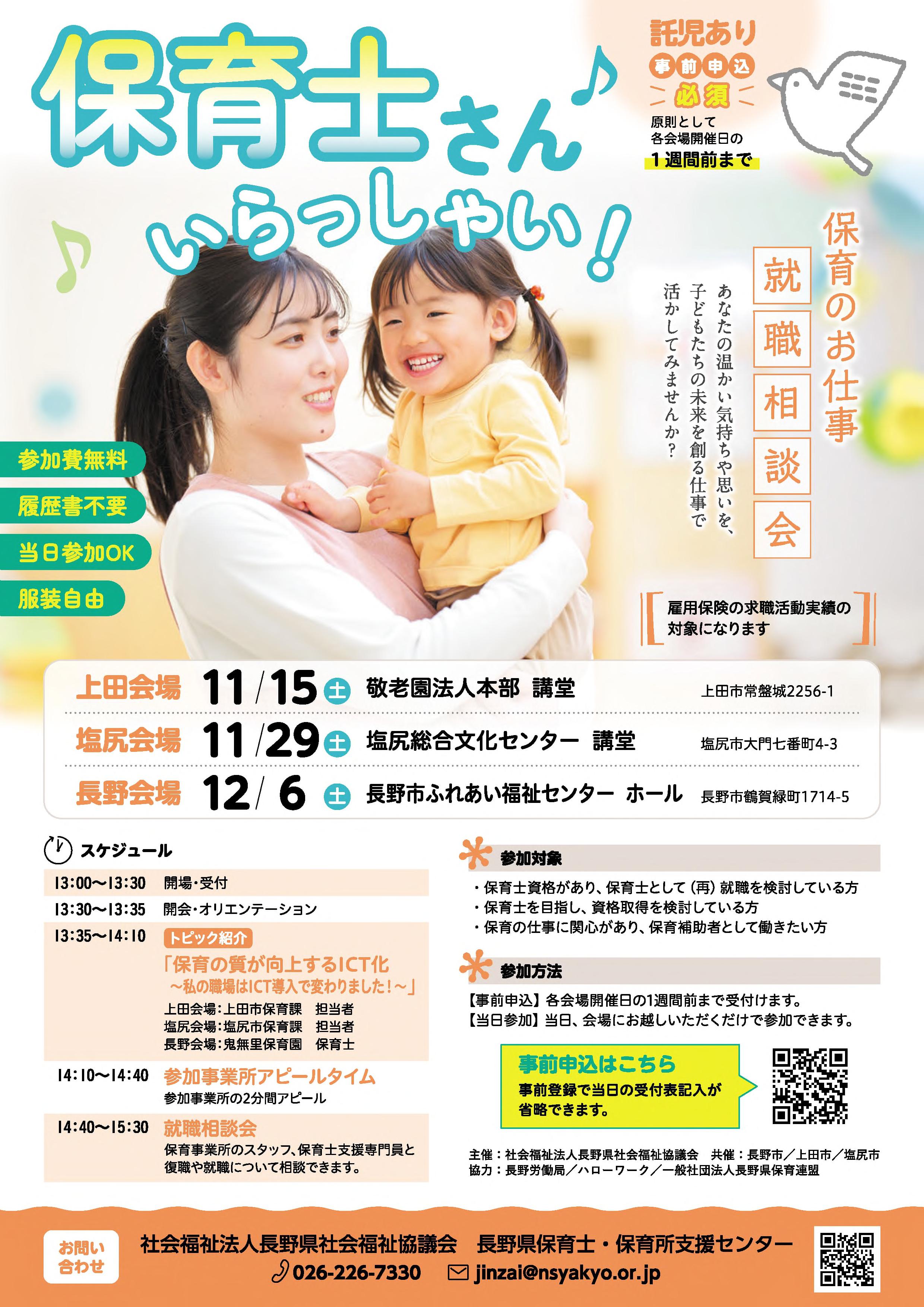 令和7年度「保育士さんいらっしゃい!」 ~保育のお仕事就職相談会~を開催します!!