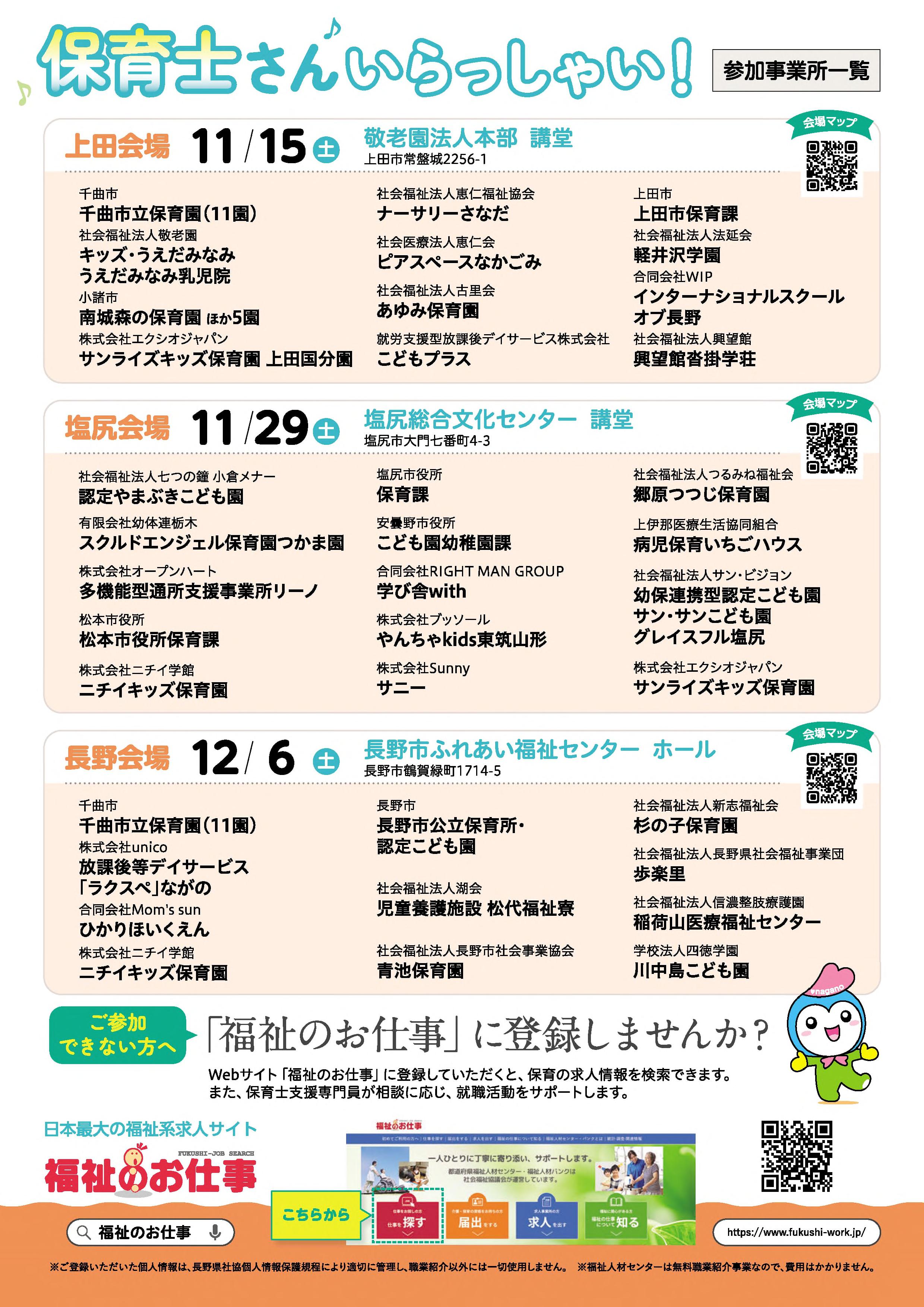 申込フォーム: 2025「保育士さんいらっしゃい」参加者申込フォーム